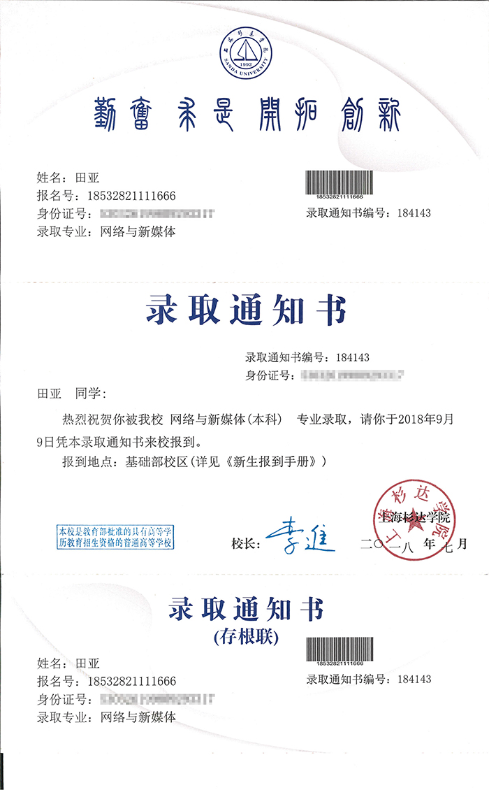 ——記好孩子學(xué)校優(yōu)秀畢業(yè)生田亞被上海杉達(dá)學(xué)院錄取