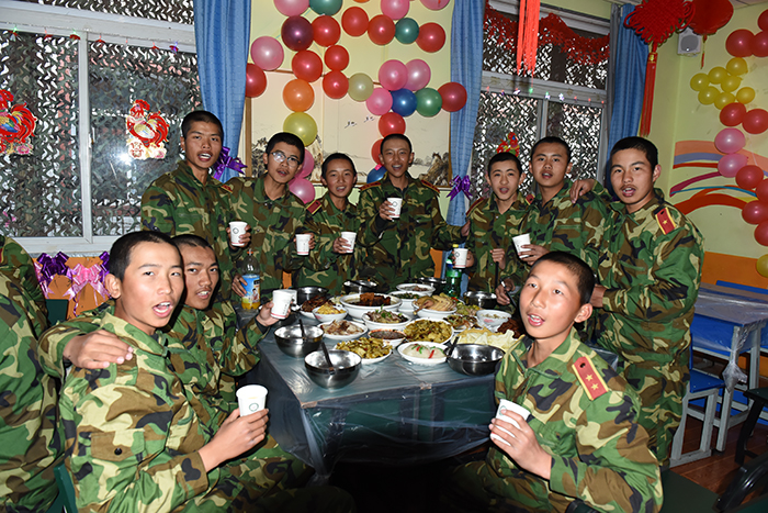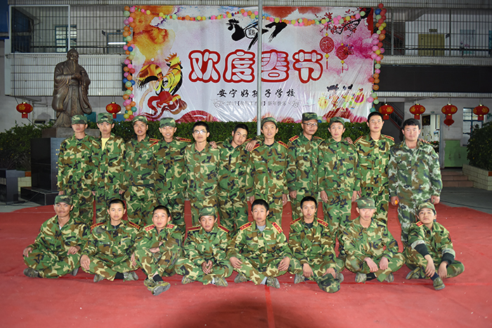 安邦(第二排左三)在好孩子學校生活點滴——2017年春節(jié),來,我們一起合影紀念下我們的青春