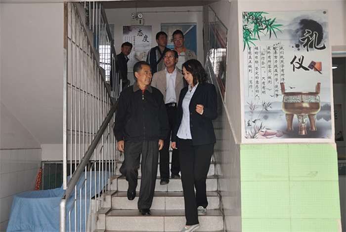 張主任一行在學(xué)校校長(zhǎng)助理李新紅的陪同下,參觀了學(xué)校教學(xué)區(qū)、宿舍、食堂以及宣傳櫥窗等,并觀看了學(xué)校教育教學(xué)短片。