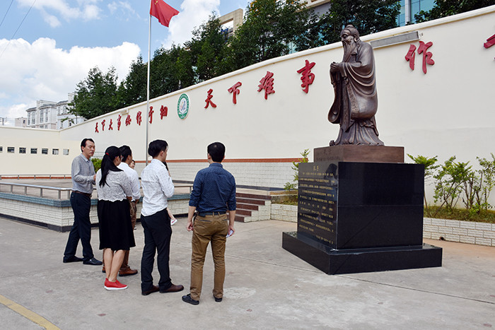 在學(xué)校校長(zhǎng)的陪同下,楊主任一行首先參觀了學(xué)校辦公樓、監(jiān)控設(shè)備、食堂餐廳、孔子雕像、學(xué)生宿舍等硬件設(shè)施;隨后,在多媒體教室觀看了教學(xué)活動(dòng)短片;最后,在辦公室就學(xué)校的法律制度、法律事務(wù)開(kāi)展?fàn)顟B(tài)進(jìn)行了深入交流。