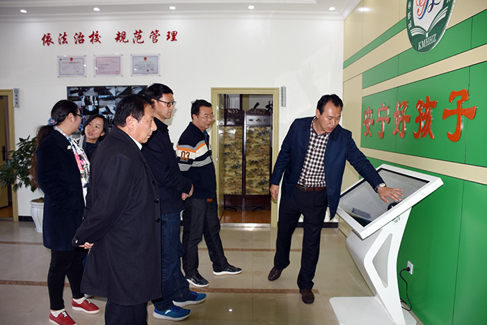 毛局長一行在的陪同下,依次參觀了學(xué)校辦公樓、監(jiān)控安防設(shè)備、食堂餐廳、學(xué)生宿舍、心理輔導(dǎo)室等,還特地查閱了學(xué)校心理輔導(dǎo)工作記錄情況,并與心理輔導(dǎo)老師們進(jìn)行了工作交流;隨后,在多媒體教室觀看了教學(xué)活動(dòng)短片。