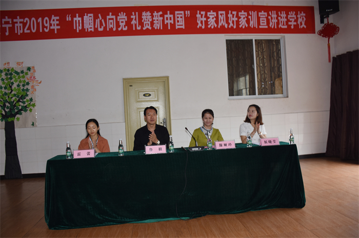 2019年9月12日上午,為深入貫徹習(xí)總書記關(guān)于家庭建設(shè)的重要指示精神,大力弘揚和踐行社會主義核心價值觀,深刻領(lǐng)悟中華民族傳統(tǒng)美德的實質(zhì)內(nèi)涵,安寧市婦聯(lián)與我校聯(lián)合舉辦“巾幗心向黨 禮贊新中國”為主題的好家風(fēng)、好家訓(xùn)、好家教宣講活動。