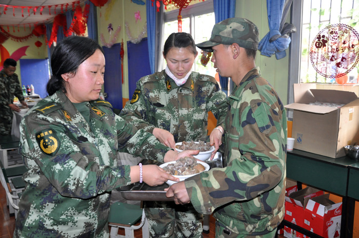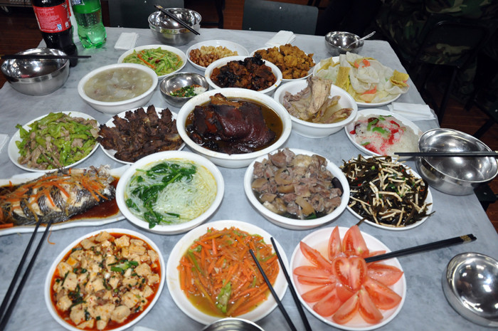 為了準(zhǔn)備豐富的年夜飯,老師和同學(xué)們從上午就開始忙碌著,一起幫著學(xué)校廚師們打著下手。你看,有的撿菜,有的洗菜,有的切肉......到了下午,一盤盤色香味俱全的菜肴就呈現(xiàn)在大家面前了,伴隨著隆隆的鞭炮聲,年夜飯開始了。