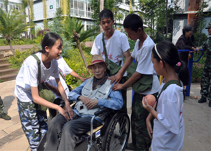 孩子們看到有的老人因年紀大而變得活動不方便,有的都忘了從前的事,只會呆呆凝視遠方時,心情也變得沉重起來。眼前的這位英語教師,曾是當年的風云人物,可如今也只能在這里度過自己的晚年。當為老人拭去臉頰上的淚水時,孩子們想起了自己的爺爺奶奶,想起了自己的年少無知,眼淚也情不自禁地從眼眶滑落。也是這一刻,孩子們突然明白,老人們想要的一點都不多,一點也不過分,他們不要榮耀,不要金錢,要的僅僅只是兒孫的陪伴而已,可這樣簡單的要求,卻是可望不可及的夢想。