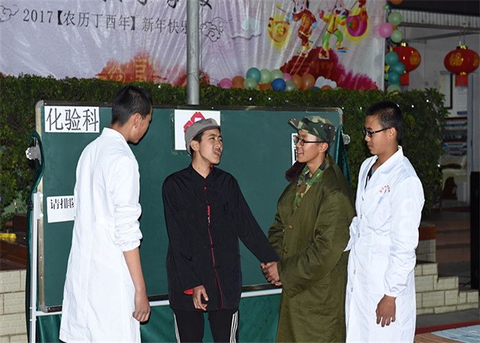 節(jié)目開始前,魯校長作了新年致辭,簡要回顧了16年的工作,并對新一年的工作提出了要求。接下來,一支《Ppap起來嗨》舞蹈拉開了晚會序幕,之后的節(jié)目內(nèi)容豐富多彩,有舞蹈、小品、啞劇、相聲、鋼琴獨(dú)奏、葫蘆絲演奏、吉他彈唱等,同學(xué)們的表演精彩絕倫、惟妙惟肖,臺下的掌聲和歡呼聲經(jīng)久不息,把現(xiàn)場的氣氛一次次推向了高潮,舞蹈《青春修煉手冊》更是把大家?guī)肓藲g樂的海洋。