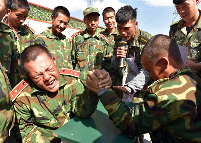 下午,首先進行的是大力士——扳手勁比賽。同學(xué)們早早就在操場上擺好桌椅等待比賽,隨著一聲哨響,比賽正式開始了。同學(xué)們摩拳擦掌地坐到了指定位置,開始“戰(zhàn)斗”起來,每位選手都緊緊地握住對方的手,卯足了勁往自己這邊扳。有的由于力量懸殊,很快敗下陣來;有的趁對方不備,猛往自己懷中一壓,還沒等對方反應(yīng)過來,手已經(jīng)被壓在桌上了;有的相持不下,鼓著腮、瞪著眼,臉漲得像個紅蘋果;有的不甘示弱,拼命想把對方的手壓下去,無奈還是沒有還手之力。場上的啦啦隊員,有的在揮手喊加油,有的急得直跺腳,有的不停地說道“不行,不行,他太強了!”操場上可謂是一番熱鬧至極的景象。