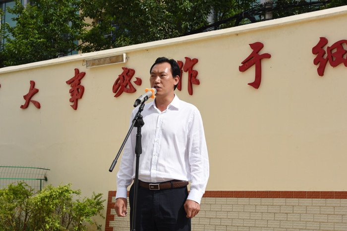 上午9時(shí)30分,升旗儀式正式開始,師生們肅立注目,伴隨著莊嚴(yán)的國(guó)歌聲,鮮艷的五星紅旗在嶄新的校園里冉冉升起。儀式上,魯校長(zhǎng)充分肯定了新校區(qū)建設(shè)和搬遷工作,勉勵(lì)同學(xué)們?cè)谛碌男@應(yīng)該有新的目標(biāo)和新的氣象,堅(jiān)定理想信念,端正學(xué)習(xí)態(tài)度,培養(yǎng)良好習(xí)慣,嚴(yán)格要求自己,學(xué)會(huì)自我管理,樹立正確的人生觀、價(jià)值觀。在學(xué)校做到政治合格、軍事過(guò)硬,傳承好孩子學(xué)校的優(yōu)良傳統(tǒng)作風(fēng),發(fā)揮特長(zhǎng),真正改變自己。走向社會(huì),做一名有理想、有文化、有道德、有紀(jì)律的合格公民。