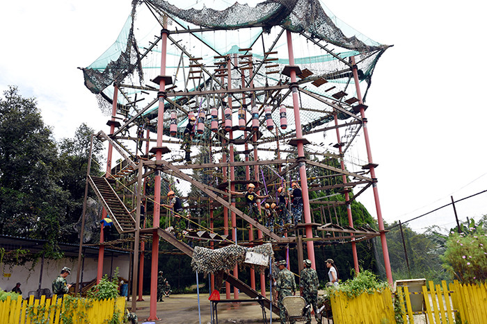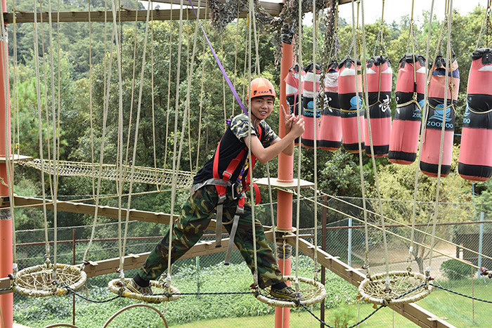 拓展活動(dòng)在教練們的耐心講解和簡短的“戰(zhàn)前”熱身運(yùn)動(dòng)中拉開了帷幕。孩子們分成兩隊(duì)比拼,在各隊(duì)隊(duì)長的帶領(lǐng)下,分別組成了“紅軍隊(duì)”與“戰(zhàn)狼隊(duì)”,相應(yīng)口號(hào)也立即產(chǎn)生,伴隨了各隊(duì)振奮人心、催人奮進(jìn)的口號(hào)和加油聲,同學(xué)們陸續(xù)挑戰(zhàn)了巨人梯、空中抓杠、探險(xiǎn)樂園等30余個(gè)項(xiàng)目。