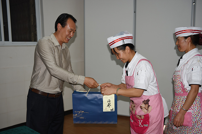 全體師生向孔子像行完鞠躬禮后,進(jìn)入食堂,準(zhǔn)備享用美味。副校長毛積敏擔(dān)任了本次活動的主持人,首先給孩子們介紹了中秋節(jié)的來歷及習(xí)俗,隨后魯校長作了中秋致辭,并陪著大家一起共進(jìn)晚餐,師生們紛紛舉杯相互表達(dá)節(jié)日祝福。為感謝幾年如一日、無怨無悔扎根于學(xué)校的老師們,魯校長精心準(zhǔn)備,給全體教職工發(fā)放了精美禮品進(jìn)行慰問。席間,孩子們迫不及待、自告奮勇上臺自我介紹或表演節(jié)目,把晚餐的氣氛推向了高潮。