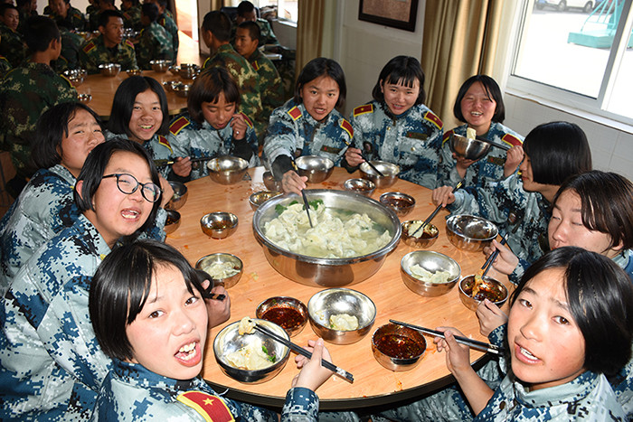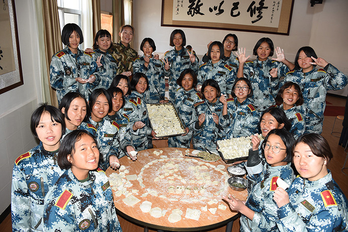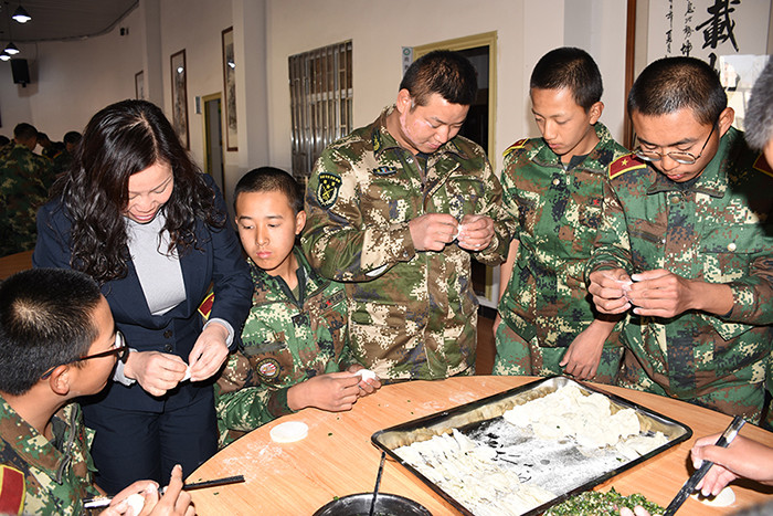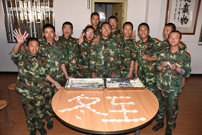 一大早,孩子們便欣喜若狂地來到食堂,迫不及待地想要大顯身手。副總教官王濤給孩子們講解了冬至的來歷和習(xí)俗后,各班主任和孩子們就一起開心地包起了餃子。你看,有的包、有的捏、有的說、有的笑、有的商討、有的相互切磋技巧......老師們一會(huì)兒做“督導(dǎo)員”,一會(huì)兒捋起袖子加入到包餃子的強(qiáng)大陣營(yíng)當(dāng)中,師生同樂的暖意沁人心脾。孩子們包出來的餃子花樣繁多、千姿百態(tài),有敦實(shí)厚重的,有別致精巧的,還有四不像的。看著一盤盤別出心裁但都裹滿愛意的餃子,看著一張張掛滿面粉但都笑容燦爛的面容,吃著香溢滿口的餃子,別樣的冬至喜慶連連。