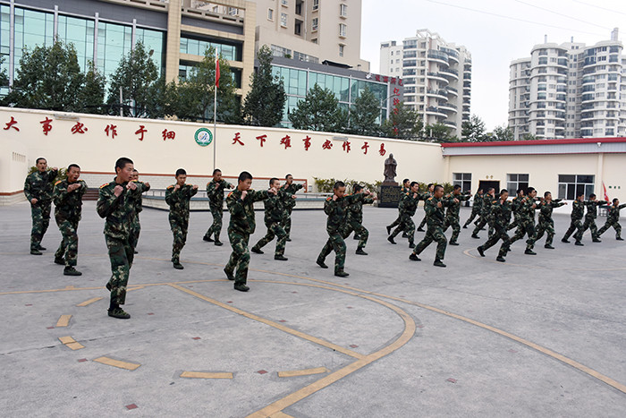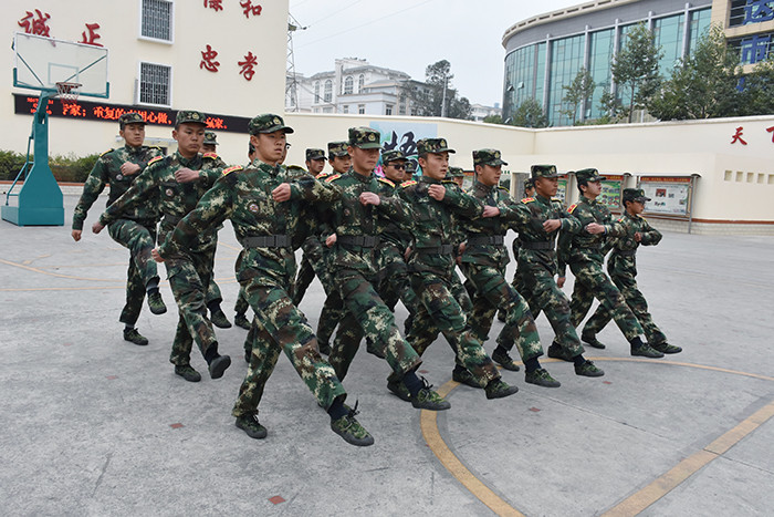 在基本的隊(duì)列表演完畢后, 伴著激揚(yáng)的旋律,女生方隊(duì)進(jìn)行了《父親》手語操和女兵操表演。看!她們一個(gè)個(gè)精神抖擻,柔中帶剛,舉手投足釋放著青春的活力,贏得了師生陣陣熱烈的掌聲。伴隨著震耳欲聾的吶喊聲,男生方隊(duì)出場(chǎng)了!他們個(gè)個(gè)生龍活虎,一招一式,剛勁有力,為我們完整地展示了第二三套擒敵拳、基本手形步形、馬步?jīng)_拳。壓軸出場(chǎng)的教官摔擒表演、應(yīng)急棍術(shù)更是淋漓盡致地展現(xiàn)了當(dāng)代軍人的風(fēng)采。
