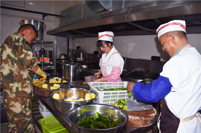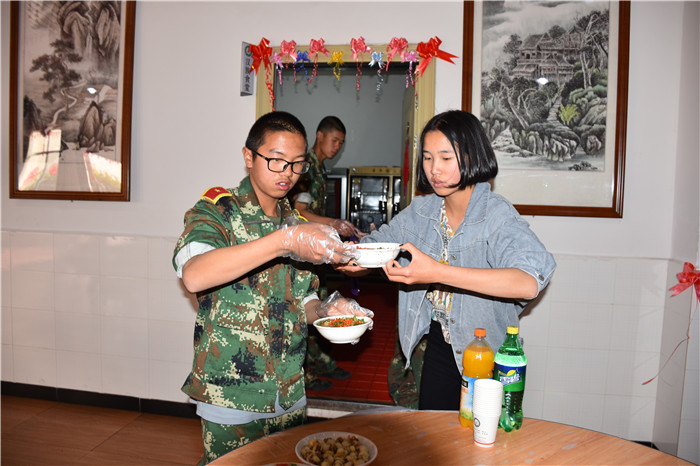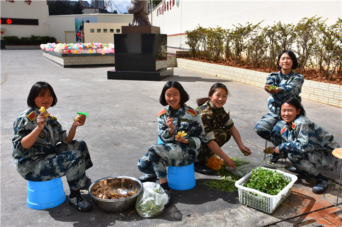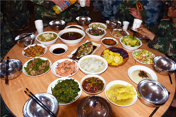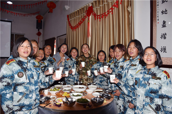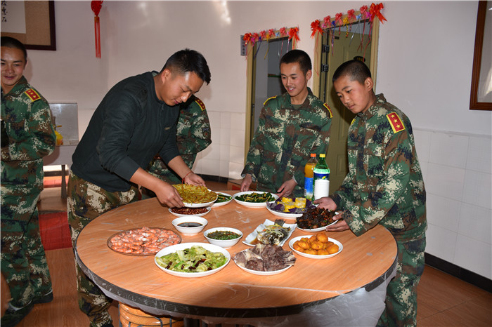 為了準備豐富的年夜飯,老師和同學們從上午就開始忙碌著,一起幫學校廚師們打下手。同學們有的摘菜洗菜、有的學著釀丸子......到了下午,一盤盤色香味俱全的菜肴就呈現(xiàn)在大家面前了,伴隨著隆隆的鞭炮聲,年夜飯開始了。