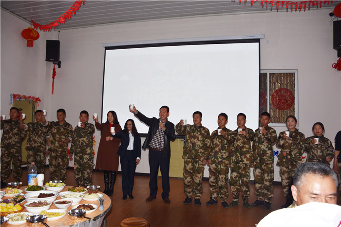 首先,我校魯植校長向大家致以節(jié)日的問候并舉杯敬酒,他表示,今年在校過年的同學們都有兩個第一:一個是第一批在新校區(qū)過年,一個是第一次離開家和老師們一起過新年。相信同學們一定能在這里過一個年味十足、意義非凡、難以忘懷的春節(jié)。同時,魯校長也勉勵大家在這里好好學習,做一個真正的好學生、好孩子。