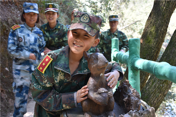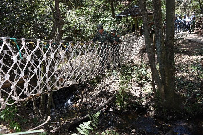 在老師們的帶領(lǐng)下,大家沿著山間的石板路,首先到達(dá)了第一個(gè)項(xiàng)目挑戰(zhàn)點(diǎn)——水上蕩繩(也叫笑料陷阱),孩子們在老師的耐心講解和示范后,相繼進(jìn)行了挑戰(zhàn)。有的輕松自如,動(dòng)作規(guī)范;有的驚險(xiǎn)蕩過,虛驚一場;有的蜻蜓點(diǎn)水,老師巧妙護(hù)住。在結(jié)束第一個(gè)項(xiàng)目后,緊接著挑戰(zhàn)了“臂力渡河”,這個(gè)項(xiàng)目難度系數(shù)增大,為了安全起見,老師下水保護(hù),挑戰(zhàn)成功的同學(xué)一臉興奮,挑戰(zhàn)不成功的也不氣餒,大聲說著要再來一次,F(xiàn)場加油聲、歡呼聲此起彼伏,氣氛格外熱烈。隨后進(jìn)行的是“叢林穿越”,孩子們分為兩列縱隊(duì)興高采烈地沿溪而上,一條長龍穿梭在山谷之中,和煦的陽光透過稠密的樹葉灑落下來,點(diǎn)點(diǎn)金色的光斑倔強(qiáng)地映照在孩子們喜笑顏開的臉上,清脆的歡笑聲在山谷間回蕩。大家邊走邊在自己喜歡的地方,擺出不同的姿勢,和小伙伴們留下最珍貴的回憶。清幽的山谷,呈現(xiàn)出一幅人與自熱和諧相處的畫面。