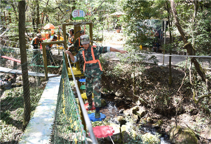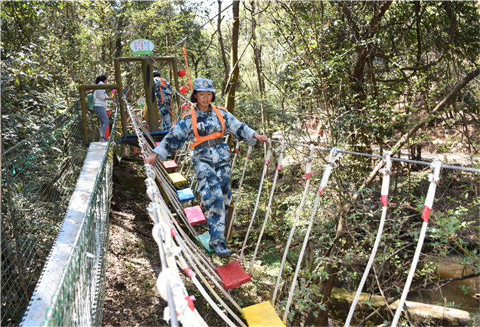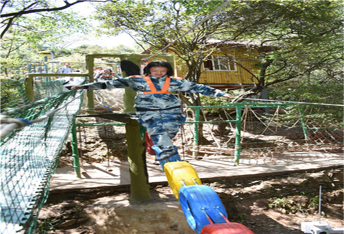 下午,孩子們在“峽谷森林最美拓展大本營”又開始了一系列的高空挑戰(zhàn)項(xiàng)目,體驗(yàn)了這條“最美森林冒險(xiǎn)之旅”的時(shí)光隧道、鐵索連環(huán)、生命之門、單側(cè)過網(wǎng)等30個(gè)驚險(xiǎn)刺激關(guān)卡,其間還能看到彩蝶翩躚,藤蔓纏繞,腳下是清澈的山澗溪流。這是全國首個(gè)在峽谷森林中獨(dú)創(chuàng)、全程網(wǎng)絡(luò)化管理運(yùn)行的拓展大本營,全長286米,全程趣味十足。雖然在挑戰(zhàn)過程中,有的孩子有過膽怯、有過害怕,但在老師們響亮的加油打氣聲中,孩子們沒有一個(gè)退縮、沒有一個(gè)放棄,憑借著頑強(qiáng)的毅力、堅(jiān)定的信念,全部通過了重重難關(guān)考驗(yàn)。
