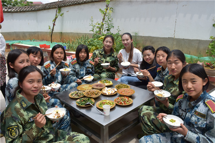 到了吃飯時間,同學們來到櫻桃園附近的農(nóng)家院,熱心的老板正在準備著豐盛的午餐,同學們很懂事,都主動幫著廚師們?nèi)ヌ锢镎、洗菜。片刻間,一盤盤美味佳肴就上桌了,孩子們吃得津津有味,大呼過癮。