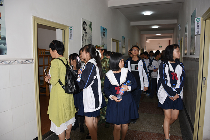 看著孩子們,我校的教官們情不自禁地下著口令,集合著隊(duì)伍,孩子們都很聽話,跟著口令,按著軍訓(xùn)時(shí)的方隊(duì),迅速整隊(duì),一個(gè)個(gè)站得筆直挺立,儼然一個(gè)個(gè)小軍人,師生們都相視會(huì)心地笑了。金殿中學(xué)的孩子們看著我校的校園,好奇地到處打量。剛聽老師說要參觀校園時(shí),就迫不及待地想要到處看看。隨后在老師們的帶領(lǐng)下,孩子們依次參觀了學(xué)生的宿舍、教室、食堂等。