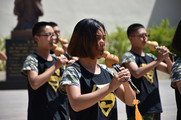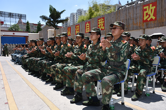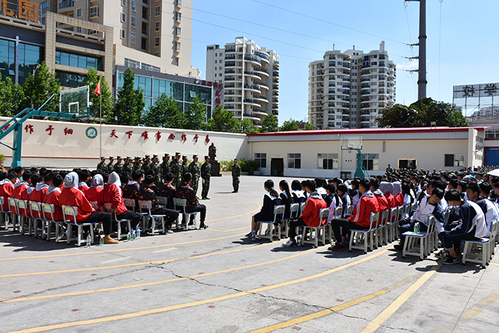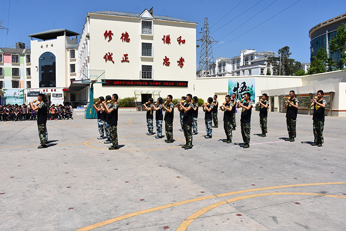 首先,在教官的帶領(lǐng)下,我校各方隊(duì)率先出場,相繼進(jìn)行了男生隊(duì)列、女生隊(duì)列、女兵操、葫蘆絲合奏、匕首操、棍術(shù)方隊(duì)、感恩手語舞的表演,整齊劃一、氣勢非凡、別出心裁的表演,贏得了場下同學(xué)們陣陣熱烈的掌聲。嘉賓席上的領(lǐng)導(dǎo)們也不時(shí)為孩子們歡呼鼓掌。時(shí)間過得很快,一個(gè)半小時(shí)過后,我校的孩子們表演結(jié)束。該金殿中學(xué)的同學(xué)們上場了,首先派出的男生獨(dú)唱,緊接著是女生合唱,兩個(gè)節(jié)目盡顯風(fēng)采,成為了一道亮麗的風(fēng)景線,我校學(xué)生激動(dòng)地為他們鼓掌!還相互討論著這個(gè)好帥、那個(gè)好漂亮…孩子們的話題始終不停息,而且很高興!