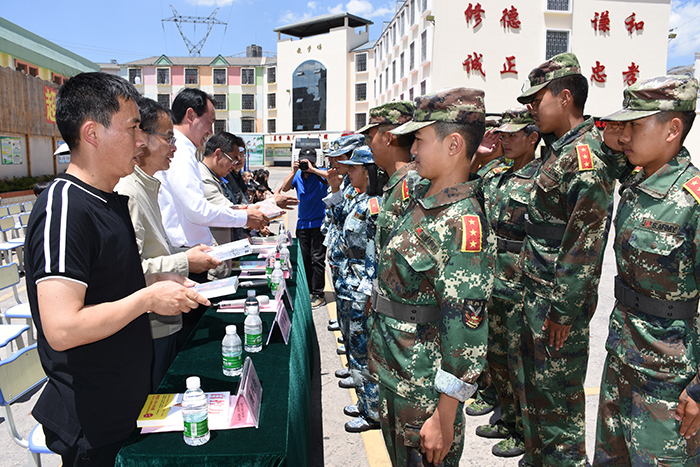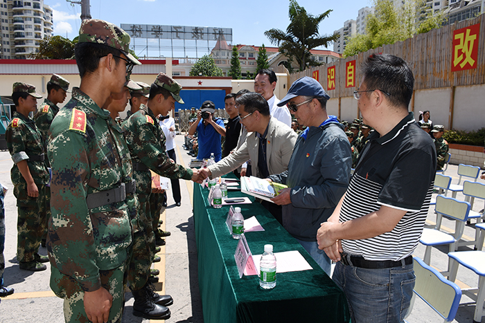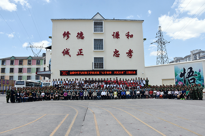2018年5月16日上午,昆明市金殿中學(xué)160名師生在校長楊躍進(jìn)、書記胡亞、副校長勞偉新、校長助理?xiàng)钏暮、工?huì)主席李仕民等校領(lǐng)導(dǎo)的帶領(lǐng)下,蒞臨我校開展“心手相牽 共筑未來”主題活動(dòng)。