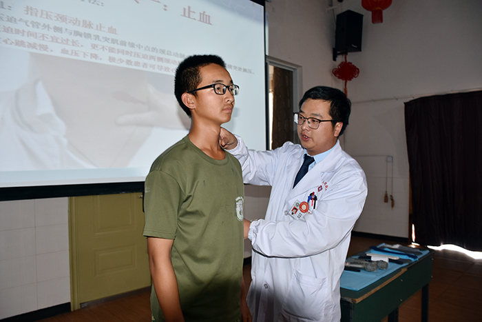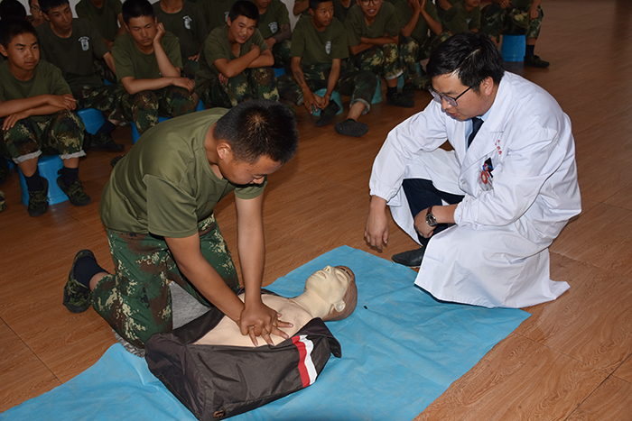 本次培訓(xùn),朱醫(yī)生用通俗易懂的語言,從日漸增多的意外傷害入題,對(duì)現(xiàn)實(shí)生活中遇到的異物梗阻、溺水防護(hù)、觸電防護(hù)等突發(fā)事件應(yīng)采取的有效救護(hù)措施。并著重講解了心肺復(fù)蘇的動(dòng)作要領(lǐng),孩子們興趣高漲,朱醫(yī)生讓孩子們對(duì)現(xiàn)場(chǎng)假人進(jìn)行模擬演練,并逐一指導(dǎo),每人都要過關(guān)才行。每做完一周期的心臟按壓,孩子們都覺得特別累,更深深地體會(huì)到了醫(yī)護(hù)人員的不易。隨后,朱醫(yī)生還對(duì)創(chuàng)傷救護(hù)的止血、包扎、固定、搬運(yùn)也作了解說與演示,指出了平常生活中的應(yīng)急誤區(qū)。