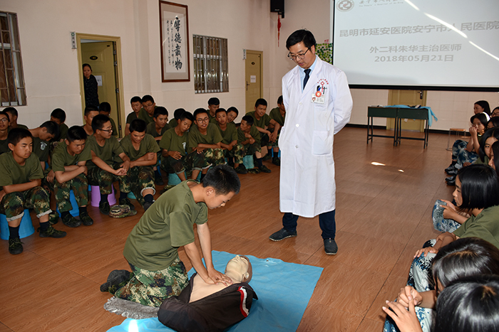 2018年5月21日下午,為全面提高全校學(xué)生對(duì)突發(fā)事故的科學(xué)、緊急救護(hù)能力,我校特邀請(qǐng)昆明市延安醫(yī)院安寧市人民醫(yī)院外二科主治醫(yī)師朱華、陸峻,護(hù)士胡亞瓊等專業(yè)醫(yī)護(hù)人員到校為孩子們開展應(yīng)急救護(hù)培訓(xùn)。
