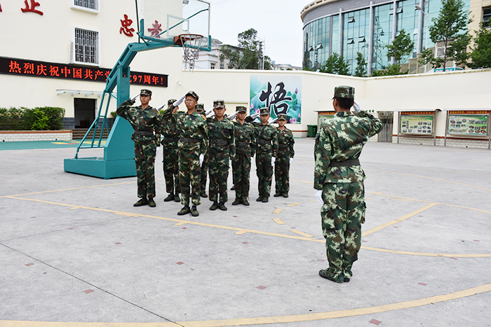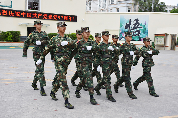 2018年7月1日,在中國共產(chǎn)黨成立97年之際,全校師生以軍訓匯報表演的形式向黨獻禮。