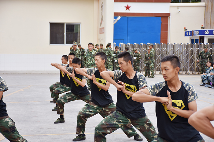 基本的隊列表演完畢后,女生方隊進行了《女兵風采》女兵操表演,鏗鏘亦溫柔,舉手投足間煥發(fā)出勃勃生機,贏得了陣陣喝彩。伴隨著震耳欲聾的吶喊聲,男生方隊出場了!他們個個斗志昂揚,勢如霹靂,為我們完整地展示了一套軍體拳,展現(xiàn)了當代軍人的風采。