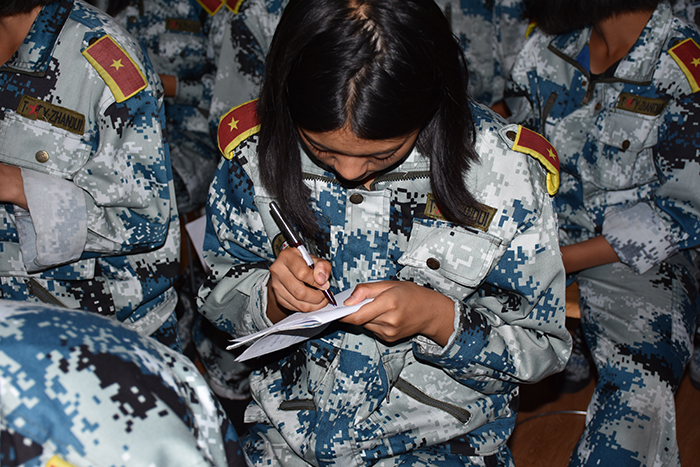 小故事,大道理。聽完“老教授”的回答,孩子們?nèi)粲兴。人格的較量?那是怎樣的一種較量?帶著疑問,周老師從人格的定義及心理特征、常見的人格缺陷及調(diào)節(jié)、怎樣塑造健全人格等方面闡述,孩子們聚精會(huì)神地跟著周老師了解了氣質(zhì)、能力、性格等多方面的內(nèi)容。通過60道氣質(zhì)測(cè)驗(yàn)題,更是全面了解了自己是個(gè)什么樣的人。