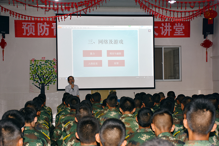 緊接著,武律師通過一系列網(wǎng)絡(luò)及游戲案例,尤其是因“藍(lán)鯨”游戲而發(fā)生的數(shù)不勝數(shù)的悲劇,警示同學(xué)們對那些刺激、血腥、暴力的游戲、以及賭博和黃色網(wǎng)站等等,要堅決抵制,拒絕不良網(wǎng)絡(luò)誘惑。而在日常網(wǎng)絡(luò)游戲中,也要有節(jié)制地上網(wǎng),否則對身心造成的嚴(yán)重傷害也是不可逆轉(zhuǎn)的。并告誡同學(xué)們要想獲得真正的認(rèn)同感,并是不是來自虛擬網(wǎng)絡(luò),而是來自現(xiàn)實世界,來自自己本身。