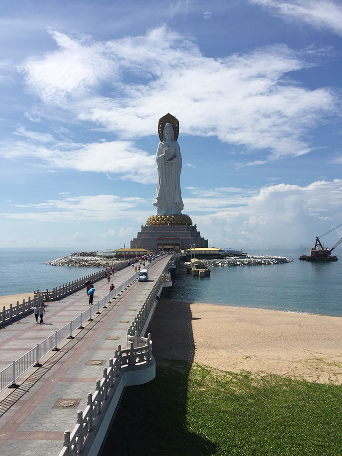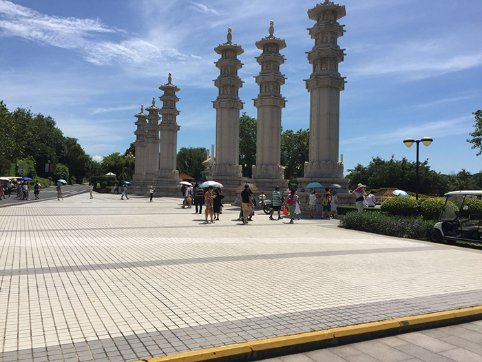 9日上午,第一站就是南海觀音。到了這里,大家頗為震撼。108米高的海上觀音圣像矗立在蔚藍色的大海之上,巍峨壯觀,實乃世界造像之最。敬建工程因其規(guī)模宏偉、意義殊勝、佛理底蘊豐富,被譽為世界級、世紀(jì)級的佛事工程。那圣潔的白與純凈的藍融在一起,讓人不禁想到“海天佛國” 四個字!
