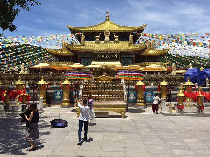 南海觀音三尊化一體,從每個面看上去,都可以看到一尊觀音像,分別是持篋觀音,意味著觀眾生之機,啟眾生智慧;持蓮觀音,寓意出淤泥而不染,根莖通心,象征“心寄眾生,三無差別”;持珠觀音,意味著徹底擺脫煩惱和束縛,達到大自由的境界。在這吉祥福澤清凈的佛教圣地,我們一路走,一路拜,一路虔誠地祈禱......
