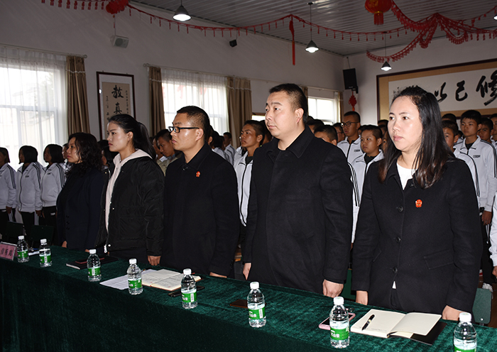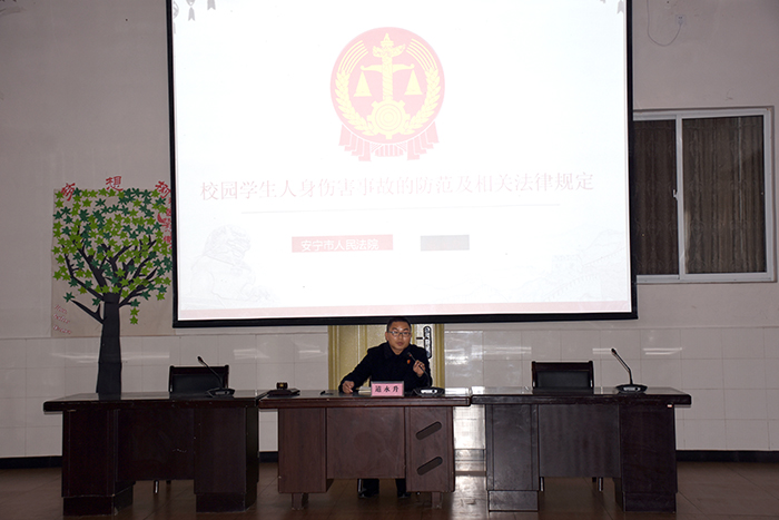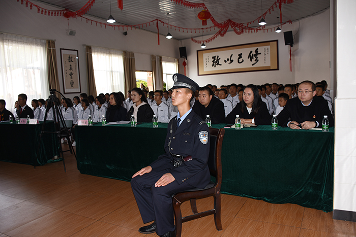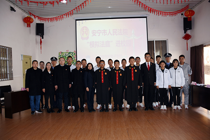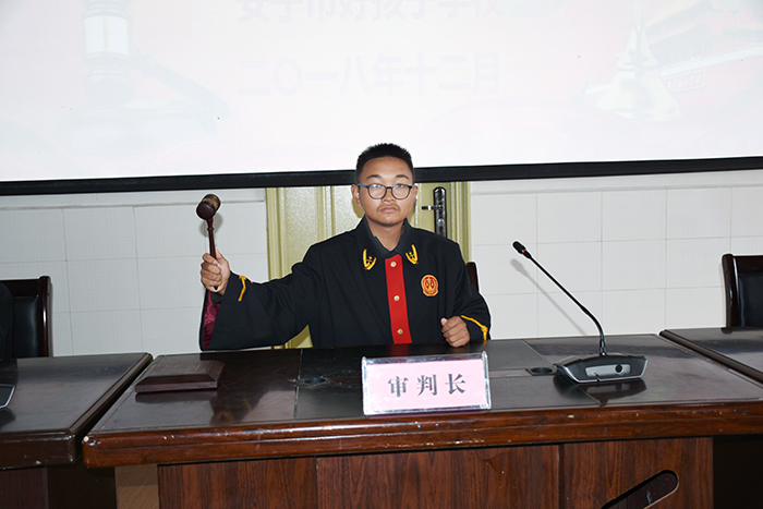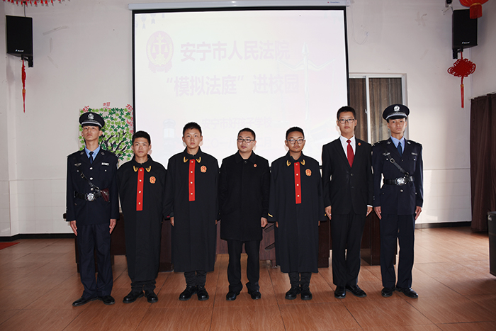 2018年12月15日上午,在安寧市人民法院道永升法官的指導(dǎo)下,在法院執(zhí)行局干警楊亮、劉沖、張杰芳的支持下,我校與安寧市人民法院聯(lián)合舉辦了“模擬法庭”進(jìn)校園庭審教育活動(dòng)。
