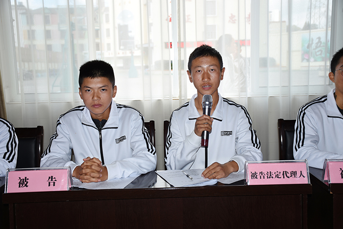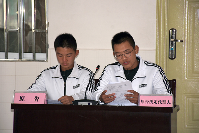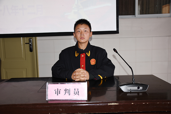上午10時(shí),隨著“小法官”一聲清脆的“現(xiàn)在開(kāi)庭”的法槌聲,一場(chǎng)特殊的庭審活動(dòng)在學(xué)校多媒體教室正式拉開(kāi)序幕。由字然等16名學(xué)生分別飾演的審判長(zhǎng)、審判員、書(shū)記員、原告、原告法定代理人、被告人、被告法定代理人、法警等法庭訴訟角色,開(kāi)始了莊重、肅穆的庭審。
