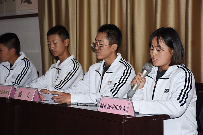 “庭審”中,“審判長(zhǎng)”有條不紊、鎮(zhèn)定自若地主持“庭審”,“原、被告”雙方及“法定代理人”舉證、質(zhì)證、激烈辯論,控辯雙方剖析法理,思維敏捷、邏輯嚴(yán)謹(jǐn),“法警”一絲不茍地執(zhí)法。通過(guò)庭前準(zhǔn)備、法庭調(diào)查、法庭辯論、合議庭審議到當(dāng)庭宣判,全程模擬了案件審理過(guò)程。150余名師生旁聽(tīng)觀摩,對(duì)整個(gè)審判流程有了更直觀、更真切、更生動(dòng)的認(rèn)識(shí)。嚴(yán)肅莊重、環(huán)環(huán)相扣的審理過(guò)程,讓大家零距離感受到了法律的威嚴(yán),也潛移默化地在心底埋下了一顆法治的種子。