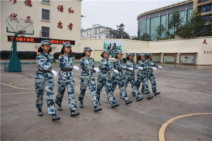 在基本的隊(duì)列表演完畢后, 伴著激揚(yáng)的旋律,女生方隊(duì)進(jìn)行了《大夢(mèng)想家》手語(yǔ)操和《青春集合在軍旗下》女兵操表演?!她們一個(gè)個(gè)精神抖擻,柔中帶剛,舉手投足釋放著青春的活力,贏得了師生陣陣熱烈的掌聲。伴隨著震耳欲聾的吶喊聲,男生方隊(duì)出場(chǎng)了!他們個(gè)個(gè)生龍活虎,一招一式,剛勁有力,為我們淋漓盡致地完整展示了擒敵拳、棍術(shù)等,充分展現(xiàn)了當(dāng)代小軍人的風(fēng)采。