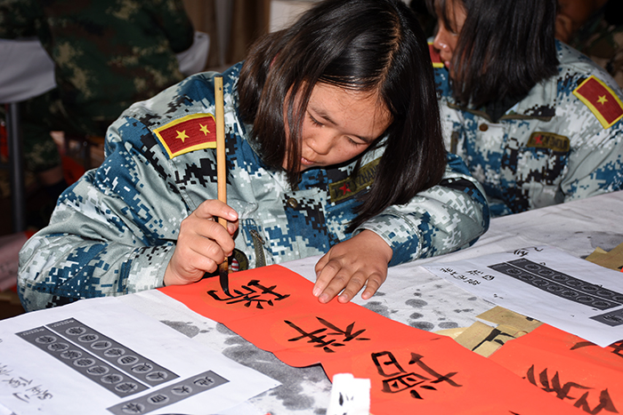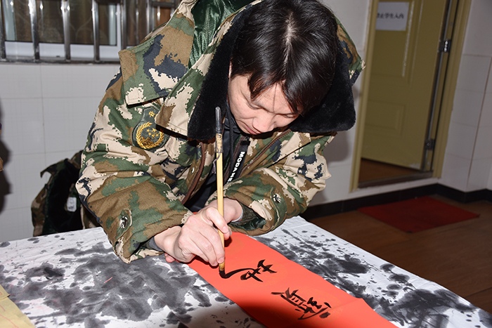 當書法老師韋昌毅把春聯(lián)準備好,宣布活動正式開始時,孩子們一個個躍躍欲試,都準備大顯身手一番。