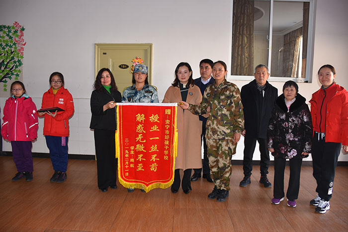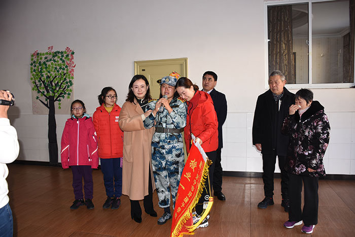 為表達學(xué)校及全體老師對孩子的培育之情,路航的媽媽特地將一面繡有“授業(yè)一絲不茍 解惑無微不至”字樣的錦旗贈給學(xué)校,我校副校長兼心理輔導(dǎo)首席專家周榕樺、班主任字貴芬老師代表學(xué)校接下了這面意義深刻的錦旗。