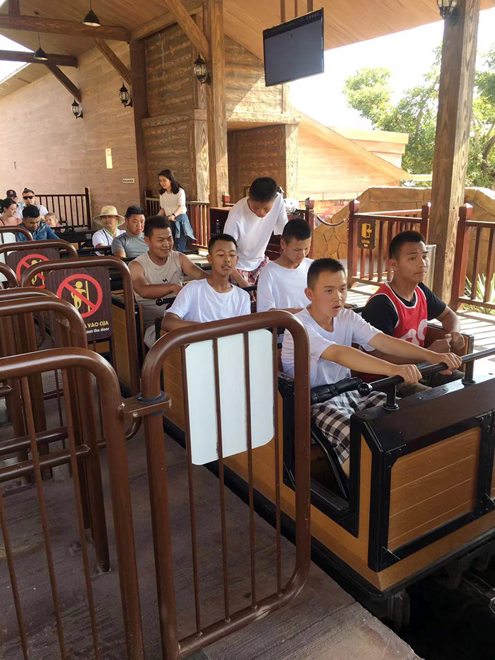 6日上午,在市區(qū)盡情享受了越南“三寶”(法棍、米粉、春卷)的美食后,孩子們便乘坐3千多米的跨海纜車直抵珍珠島,開始驚險刺激的高山索道飛車、大擺錘、跳樓機、過山車、采礦小火車等挑戰(zhàn),也許是因為年輕或是勇敢,有的項目玩過一次,孩子們還想玩第二次、第三次......玩得根本停不下來。