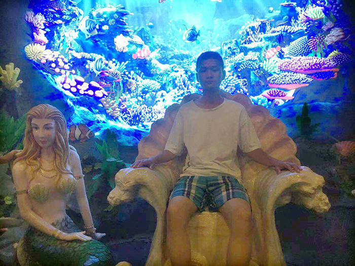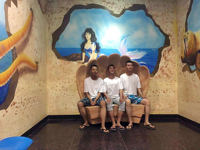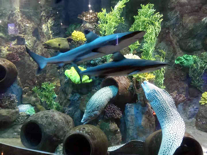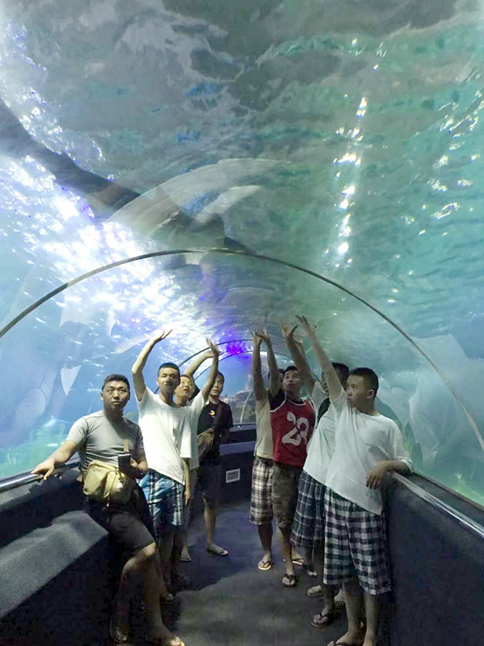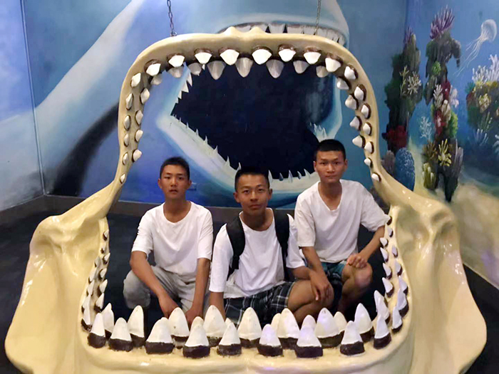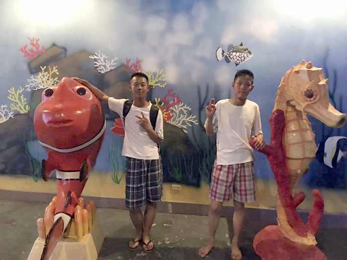 在經(jīng)過一段時間的休閑放松后,孩子們又開始了室內(nèi)電玩——碰碰車的一次次溫柔對峙。玩得精疲力盡后,還是不愿停下腳步,而是徑直到了水族館,在海底長廊里,以空間立體角度去觀賞礁叢中袖珍的海馬、可愛的小丑魚、鮮艷的?雀鞣N各樣的海洋生物,置身其中,仿佛置身于海底世界。一波一波的快樂余溫還未褪去,又被4D的水幕電影俘虜了眼球,震撼的表演讓孩子們連連尖叫不斷。