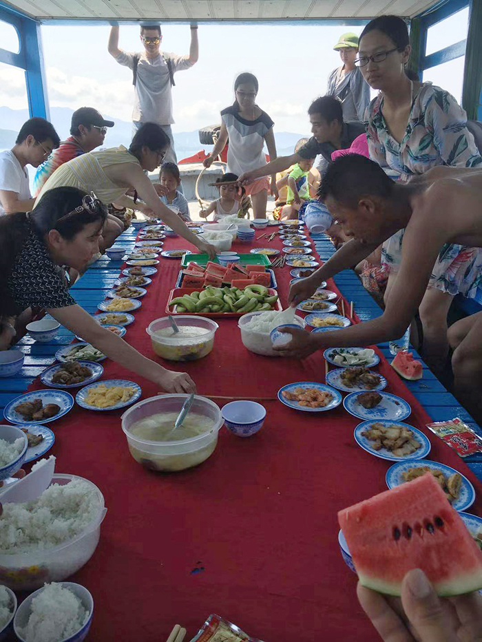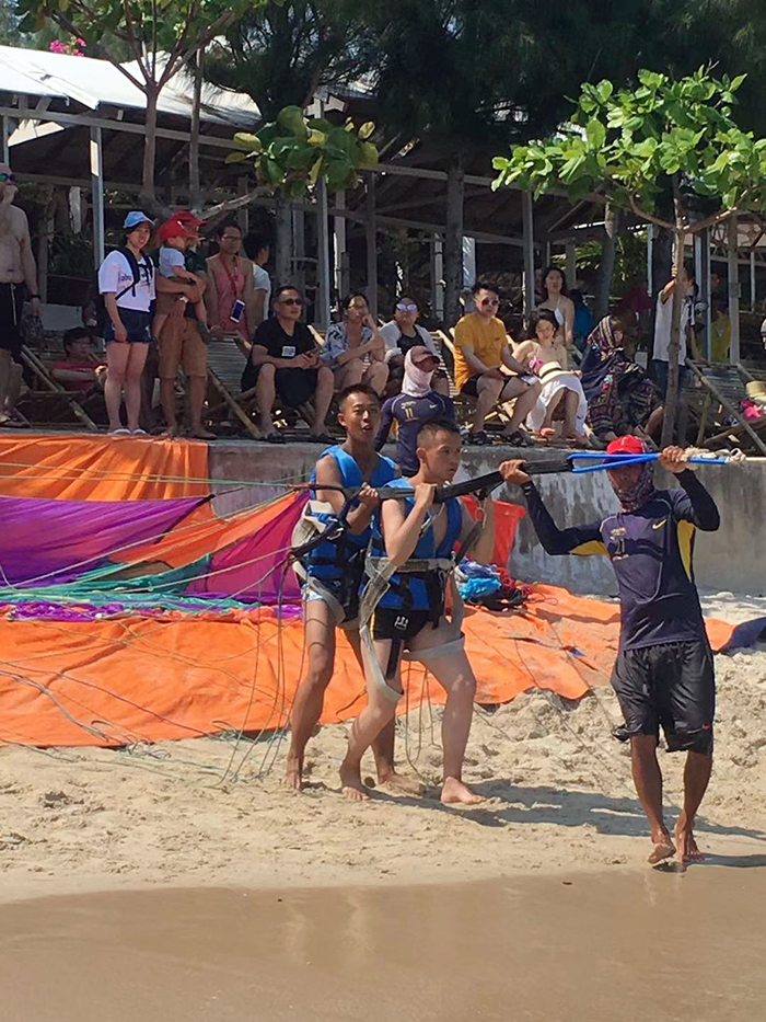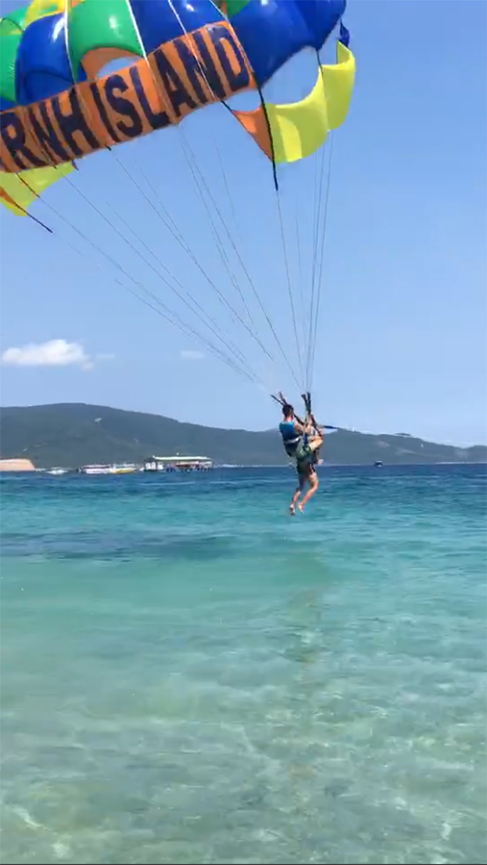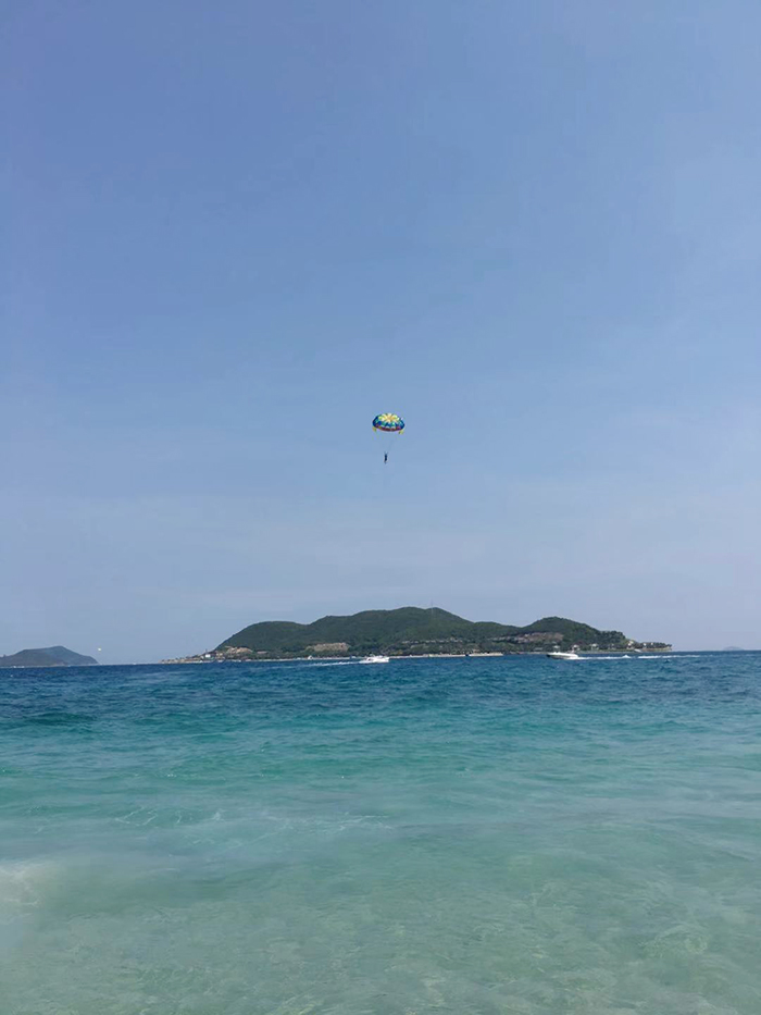 8日上午,孩子們興致勃勃地坐著木船出海到“竹島”游泳、曬太陽,并在船上享用美味的海鮮風(fēng)味餐,真是寧靜時光的無盡享受。隨后又去“黑島”玩水上降落傘,陸續(xù)起飛的降落傘不斷從水上的高空飄過,紅黃相間的大傘鼓滿了風(fēng)帆,在碧海藍天之間劃出了靚麗的弧線。俯瞰深藍的芽莊大海,像是鳥兒一般在自由自在的飛行。