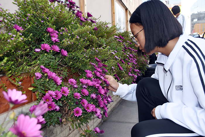聞著花香,孩子們上課時仿佛多了一份靈性;欣賞著花朵,孩子們課間少了一些追逐;侍弄著花兒,孩子們的生活平添了不少情趣,整個人變得精神起來。