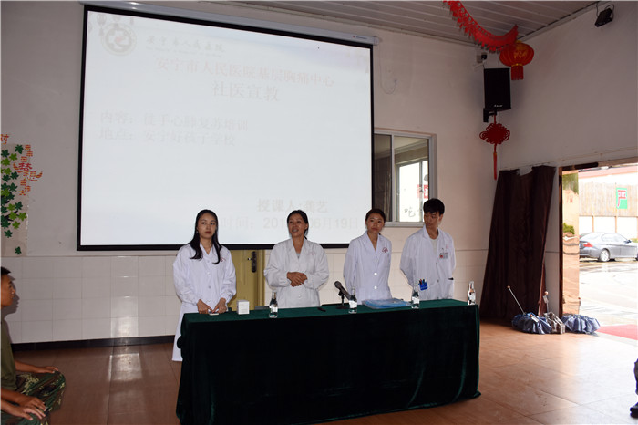 2019年6月19日下午,為進(jìn)一步提高學(xué)生面對(duì)突發(fā)事故的應(yīng)急救護(hù)能力,掌握基本的自救、互救本領(lǐng),我校特邀請(qǐng)安寧市人民醫(yī)院醫(yī)教科主任龔藝?yán)蠋熂搬t(yī)師鄭蕊、胡儉、科教王璽雅等到我校開展 “心肺復(fù)蘇”專題應(yīng)急救護(hù)培訓(xùn)。