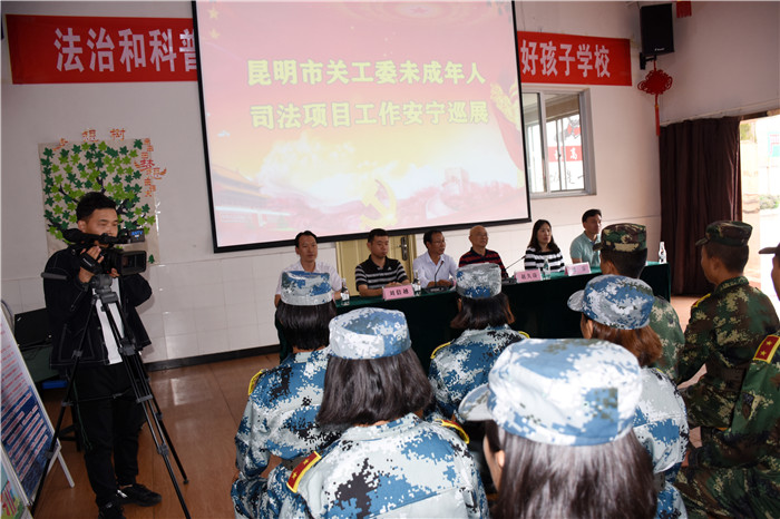 活動(dòng)開(kāi)始,趙主任首先就未成年人司法項(xiàng)目工作在預(yù)防青少年犯罪和青少年觸法權(quán)益維護(hù)工作中的重要性,以及政府在開(kāi)展未成年人司法保護(hù)工作中的努力和成效,向大會(huì)作了精彩致辭。隨后,趙主任還對(duì)孩子們作了殷切勉勵(lì):“這是我第四次來(lái)好孩子學(xué)校,雖然每一次來(lái)基本都是新面孔,但每一次來(lái)給我的印象都很深,很感動(dòng)。我曾是一名軍人,孩子們現(xiàn)在端正的坐姿、整齊的鼓掌以及良好的精神面貌,都讓我無(wú)比的自豪和欣慰,你們都是好孩子,出去也會(huì)是一個(gè)好兵。希望孩子們珍惜好人生的經(jīng)歷,珍惜好在好孩子的這段時(shí)光,努力提升自己,樹(shù)立遠(yuǎn)大目標(biāo),將來(lái)做一個(gè)德才兼?zhèn)涞娜!?br style="font-family: ;">    隨后,趙主任一行在我校魯植校長(zhǎng)的陪同下,深入學(xué)校教學(xué)樓、宿舍樓等實(shí)地查看了校園環(huán)境,并在多媒體教室觀看了學(xué)校教學(xué)活動(dòng)短片。其間,魯校長(zhǎng)向趙主任詳細(xì)匯報(bào)了學(xué)校近期的各項(xiàng)教育教學(xué)工作開(kāi)展情況。聽(tīng)后,趙主任對(duì)我校的各項(xiàng)工作給予了高度肯定,尤其是夸贊學(xué)校法治宣傳教育開(kāi)展得有聲有色,每年都有不一樣的新內(nèi)容呈現(xiàn)出來(lái),無(wú)愧于“昆明市青少年法治教育基地”這個(gè)光榮稱號(hào)。