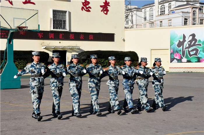 基本隊列動作表演結(jié)束后,各方隊在教官的指揮下進行了擒敵拳、應(yīng)急棍、手語操、女兵操等表演。同學(xué)們整齊的隊伍、精準的動作、昂揚的士氣、嘹亮的軍歌、優(yōu)美的旋律、燃燒的激情贏得了陣陣掌聲。