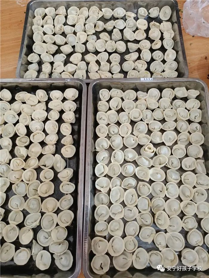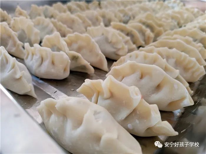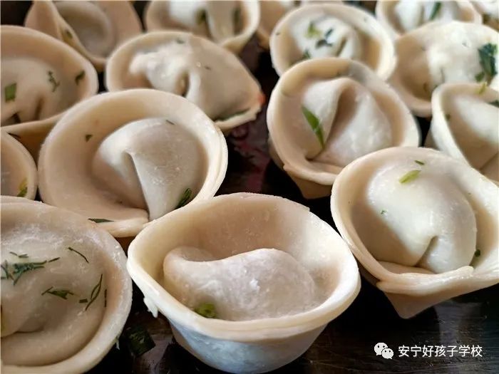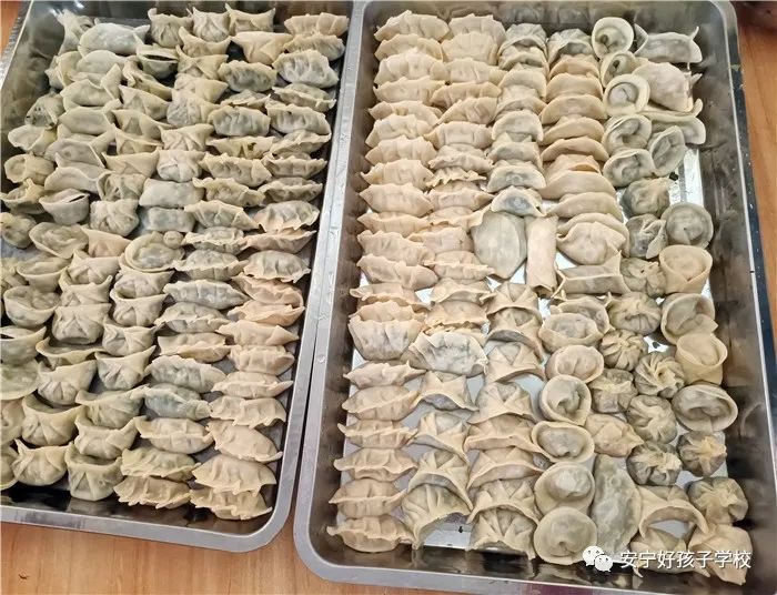 下午三點,活動在學校餐廳舉行。食堂廚師們把餃子餡調好后,各班主任和同學們就一起開心地包起了餃子。老師們一會兒做“督導員”,一會兒捋起袖子加入到包餃子的強大陣營當中,師生同樂的暖意沁人心脾。