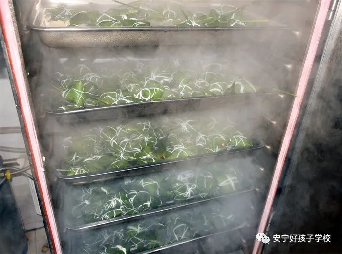 上午9時(shí),在莊嚴(yán)的升旗儀式后,師生們開(kāi)始熱火朝天地包起了粽子。