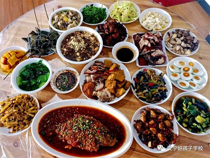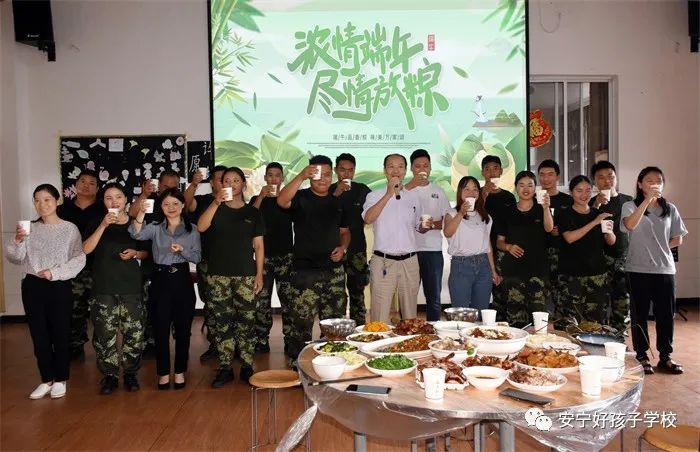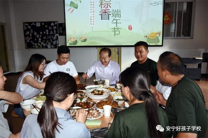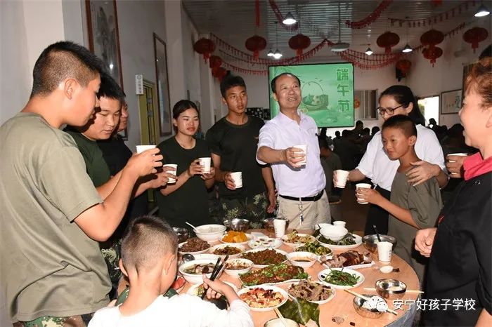 傍晚,一個(gè)個(gè)香氣撲鼻的“粽子”新鮮出爐了,一桌桌色香味俱全的美食便呈現(xiàn)在大家眼前。餐前,學(xué)校理事長(zhǎng)袁戰(zhàn)穩(wěn)向全體師生致以節(jié)日的問(wèn)候,希望大家都能品嘗時(shí)光的香甜,在往后的日子里平和安康。隨后,在袁理事長(zhǎng)“開(kāi)席”的一聲令下后,大家共同舉杯,互道“端午節(jié)安康”,晚宴正式開(kāi)始了。孩子們迫不及待地吃著豐盛的晚餐,品嘗著自己的“作品”,笑容分外甜蜜。席間,袁理事長(zhǎng)還親切地走到孩子們中間敬茶祝福。感受著袁理事長(zhǎng)關(guān)切的話(huà)語(yǔ)、和藹的笑容,同學(xué)們心里暖暖的!鏡頭下,孩子們還紛紛向老師和遠(yuǎn)方的父母送去節(jié)日的祝福,祝愿他們端午安康。整個(gè)場(chǎng)面洋溢著濃郁的節(jié)日氛圍。