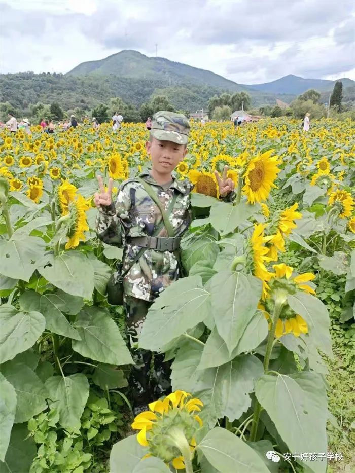 下山后,經(jīng)過小憩,孩子們便一鼓作氣地朝牧羊湖挺進,迫不及待想要一睹金色螳螂川的向日葵美景。兩岸“柳市村村接,松燈點點明。家家傾蟻酒,夜夜?fàn)Z魚羹”這是古人對于安寧螳螂川的描繪。土地平曠,屋舍儼然,往來種作,怡然自樂,似有桃花源記之掠影,儼然一副逍遙自在景象。而今時的螳螂川,恰是一年中最好看的時候,百萬株向日葵進入盛花期,整個一金色海洋,微風(fēng)吹散晨霧,漾起層層花浪,剎那間把一方山谷染得金黃。