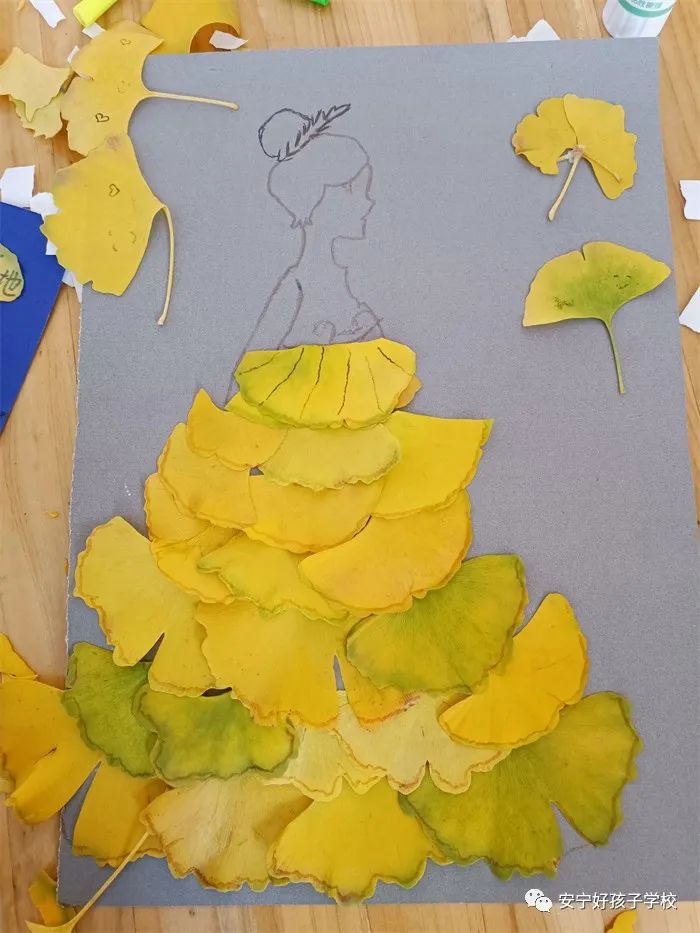 活動(dòng)中,師生們熱情高漲,全身心投入制作。通過壓平、粘貼、晾干等方法,巧妙地利用不同顏色和形狀的樹葉,或是平鋪制圖,或是層層疊加,在卡片上繪制圖案。很快,一片片不起眼的葉子,經(jīng)過一雙雙巧手的精心雕琢,便成了一件件栩栩如生的藝術(shù)品,有舞者、公主裙、圣誕樹、花朵等銀杏畫,有的孩子還在葉子上寫下了滿滿的祝福和對(duì)未來的憧憬。一片片銀杏葉頓時(shí)像被賦予了生命一樣,鮮活起來。