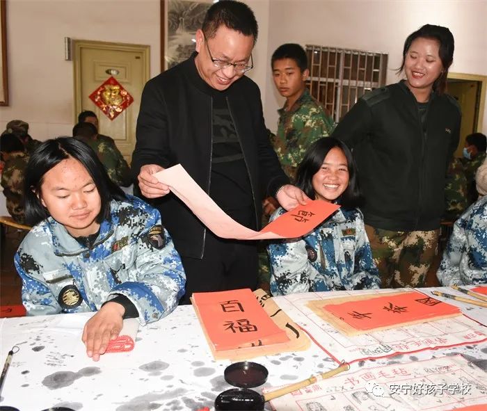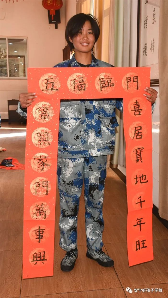 同學(xué)們?cè)跁鴮懼啵紛紛拿起自己的作品,進(jìn)行拍照留念,并把新一年的美好祝福絡(luò)繹不絕地相繼寄回家,讓春聯(lián)帶著祝福溢滿自己的家園。